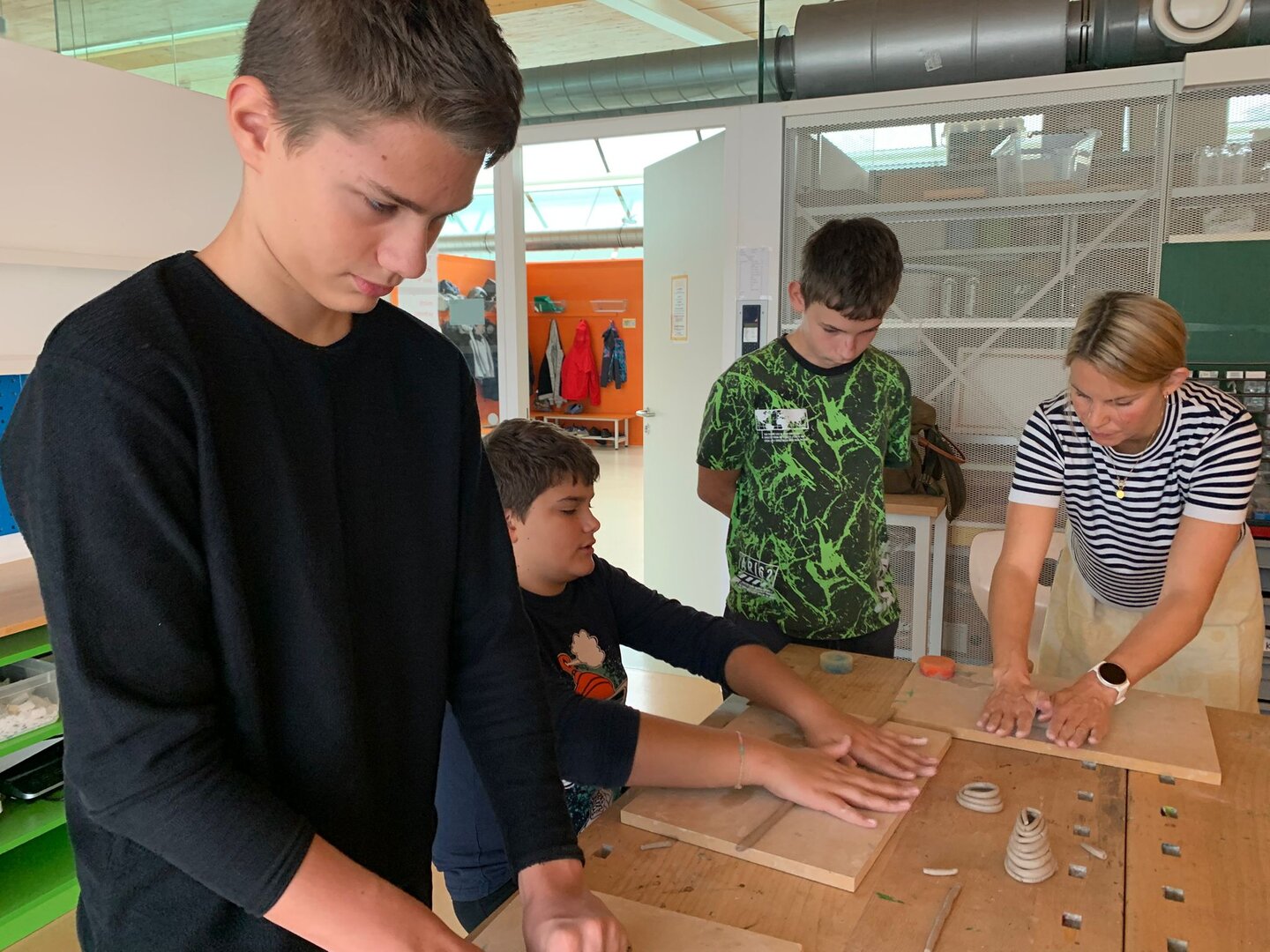 Töpfern erfordert mehrere Arbeitsschritte, darunter das Formen des Tons, das Trocknen, das Brennen, das Glasieren und ein weiteres Brennen, und daher erfordert Töpfern auch Zeit. Deshalb hat die Produktion der ersten Töpferwerkstücke bereits begonnen und die SchülerInnen der ASO Schwechat zeigten beim Formen des Tons viel Fingergeschick und Ausdauer.