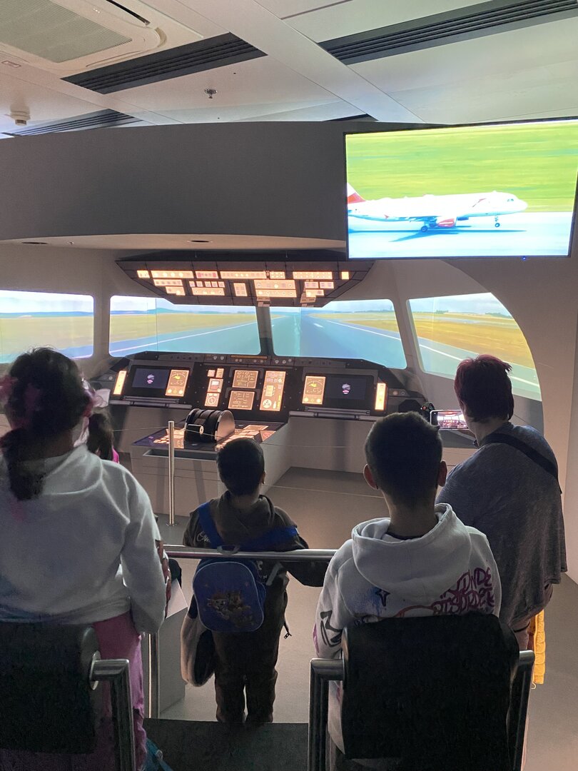 In der Besucherwelt erfuhren die SchülerInnen, wie ein Flughafen funktioniert, was hinter den Kulissen passiert und welche Berufe dort gebraucht werden. Besonders interessant waren die Einblicke in die Gepäckabfertigung und in den Tower.