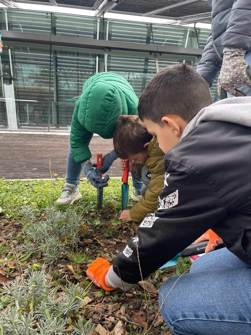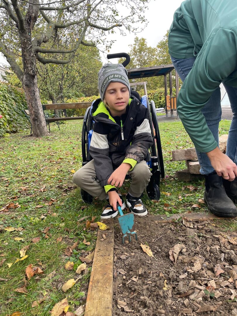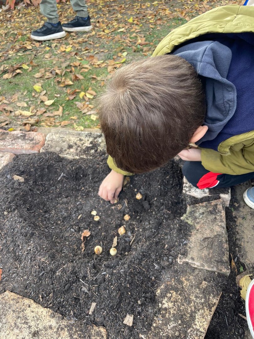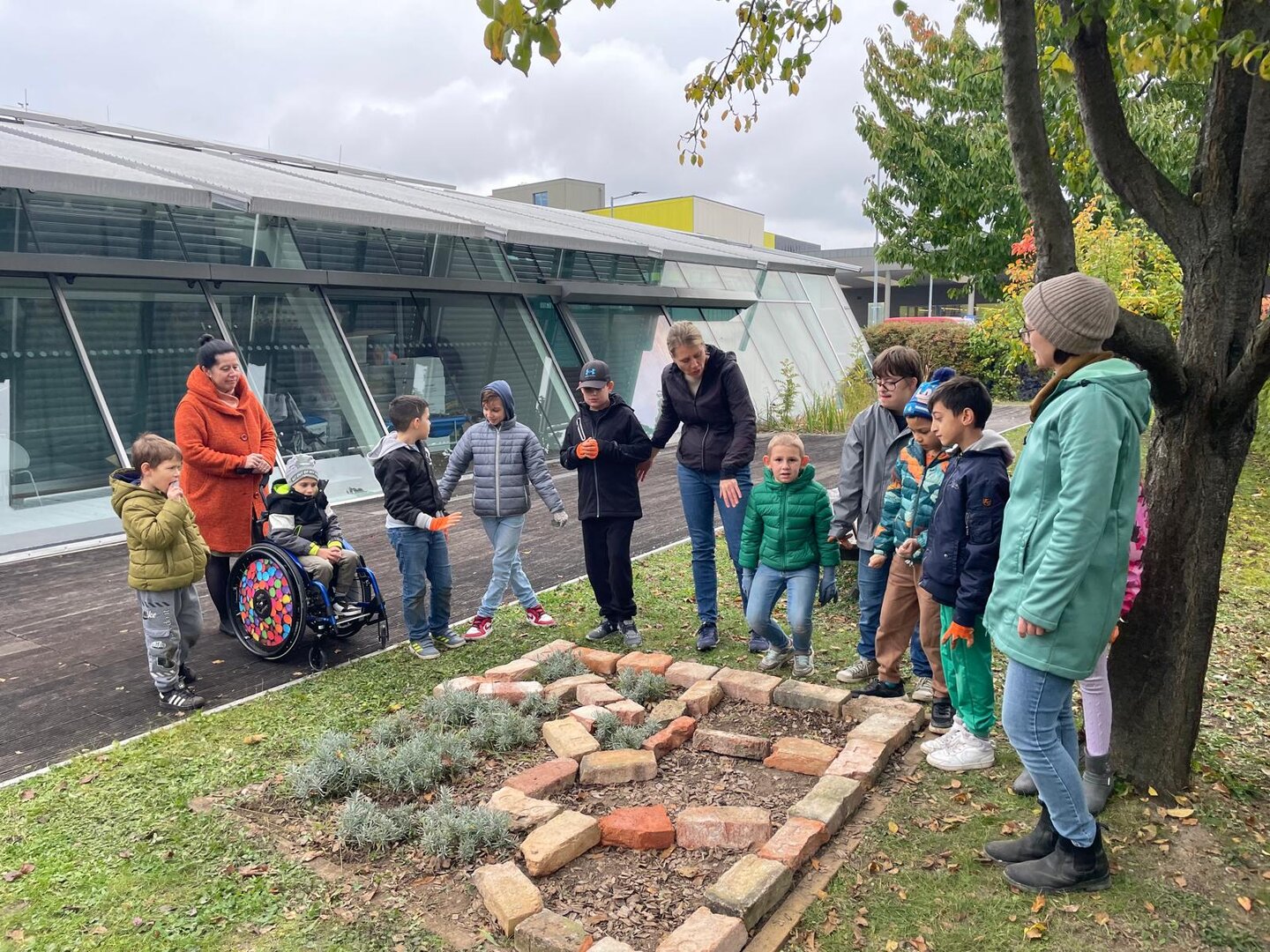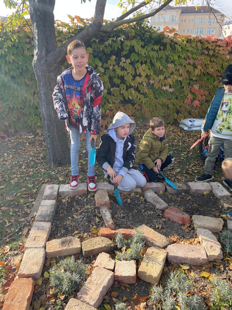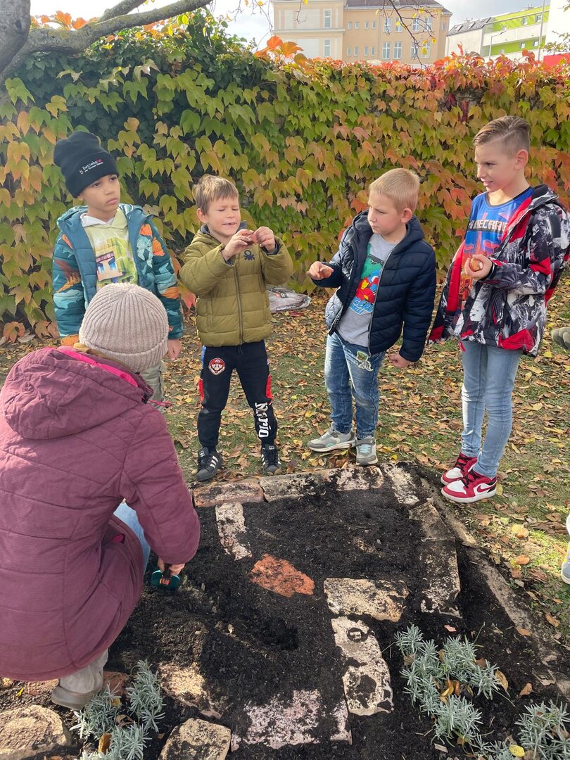Die 1A und die 6E haben in einem gemeinsamen Projekt zur Verschönerung des Schulgartens beigetragen. Viele fleißige Hände zupften Unkraut, kehrten Laub, fütterten unseren Komposter damit und legten ein wunderschönes neues Blumenbeet an, in das jedes Kind seine eigenen Blumenzwiebeln setzen durfte. Jetzt heißt es warten und im Frühling dürfen wir uns an schönen Narzissen, Tulpen und Traubenhyazinthen erfreuen.