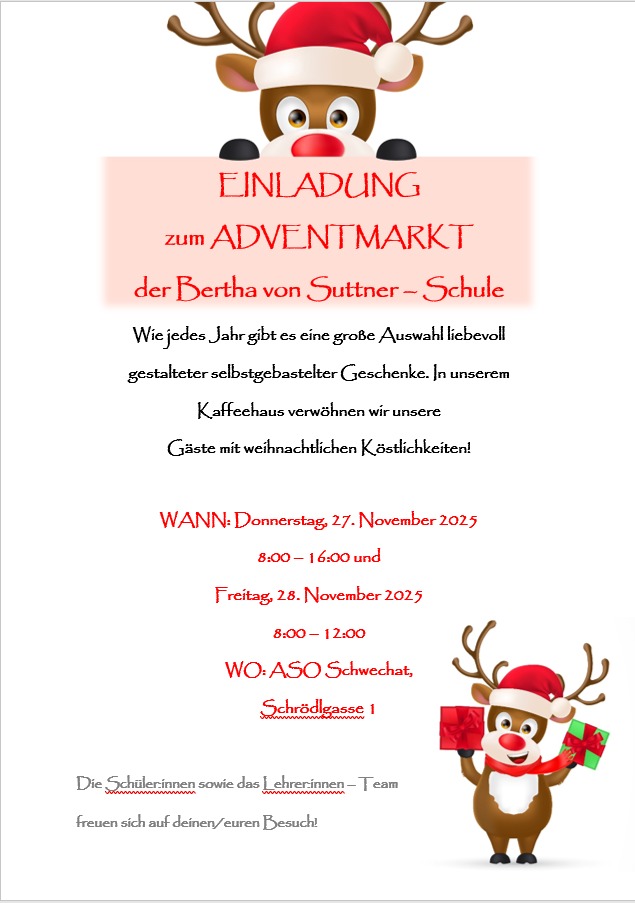 Herzliche Einladung zum Adventmarkt der Bertha von Suttner Schule!