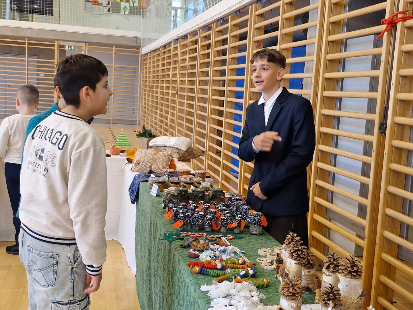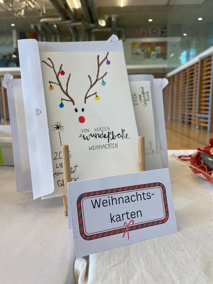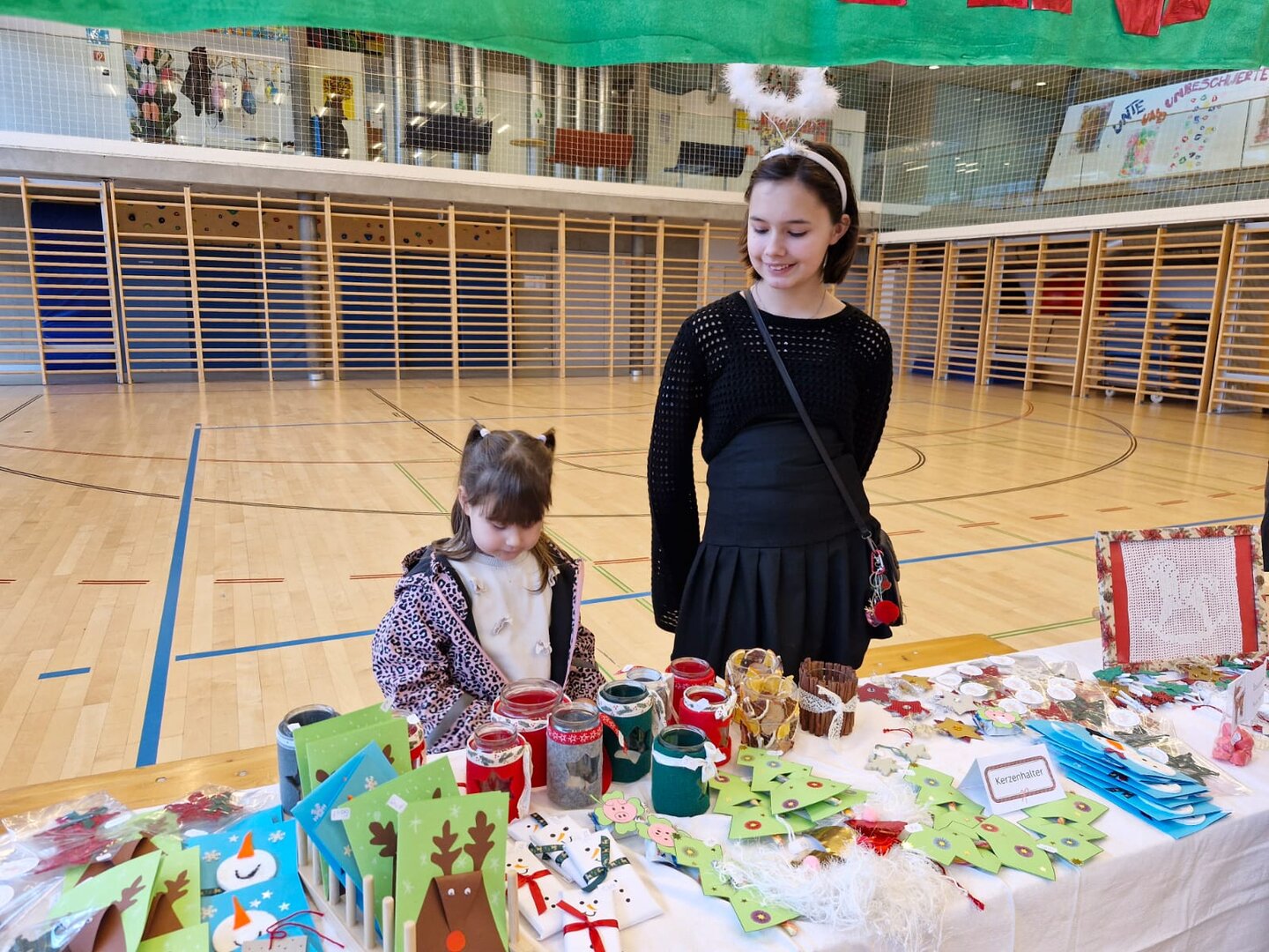 Die Lehrerinnen und Lehrer banden im Vorfeld mit viel Engagement wunderschöne Adventkränze, die großen Anklang fanden. Unsere Schülerinnen und Schüler steuerten liebevoll gestaltete, selbstgemachte Weihnachtsdekorationen und kleine Geschenke bei, die sie in den vergangenen Wochen mit großer Freude und Kreativität hergestellt hatten.
