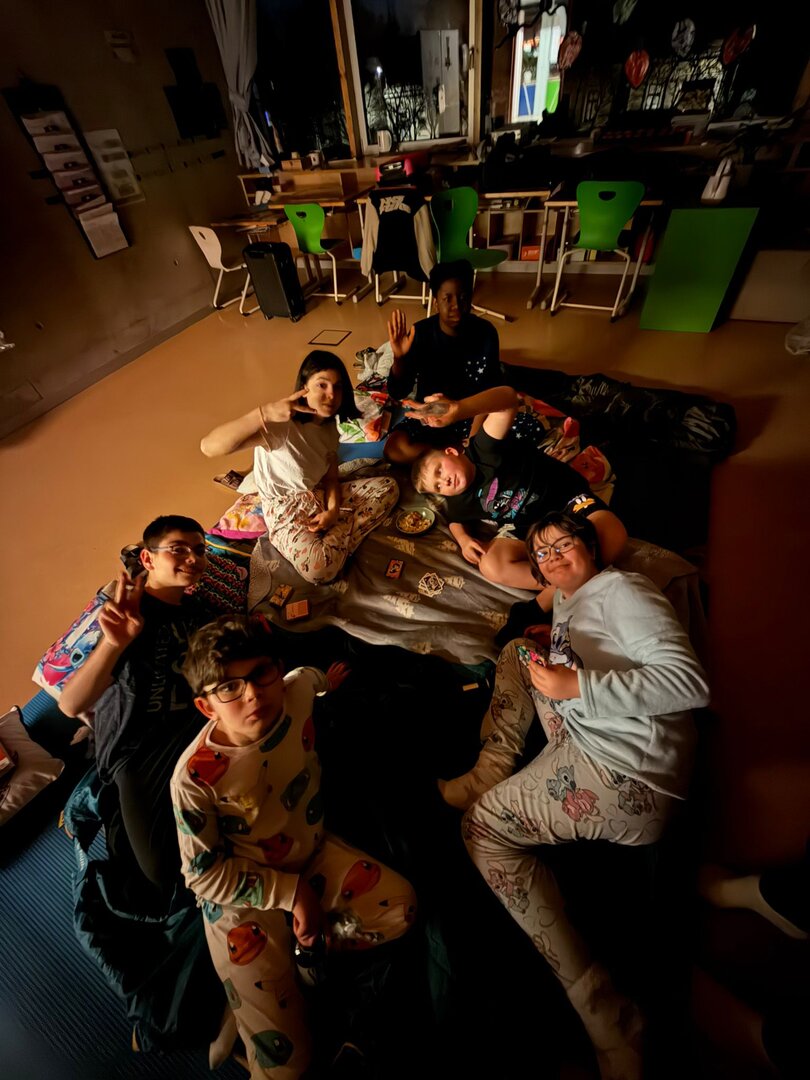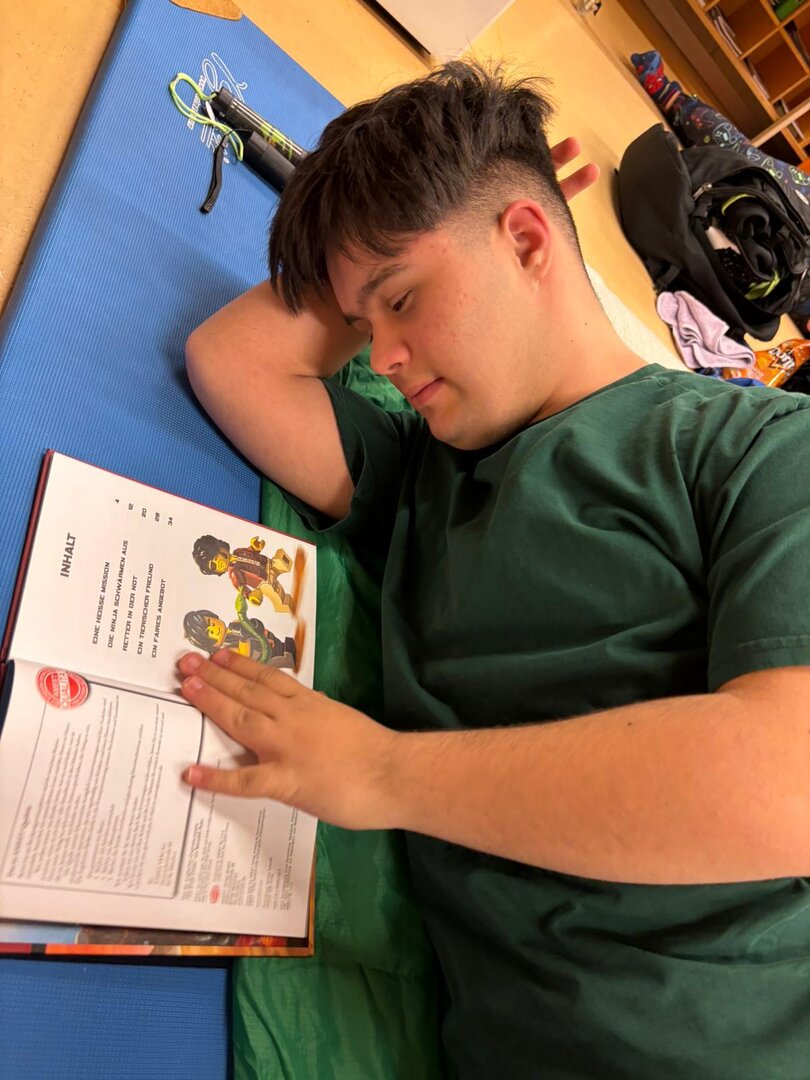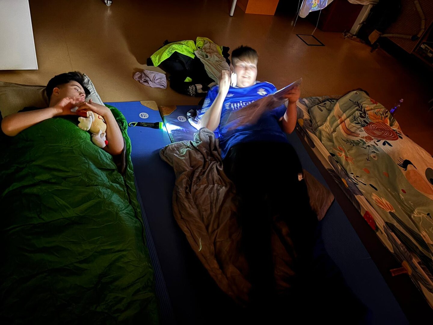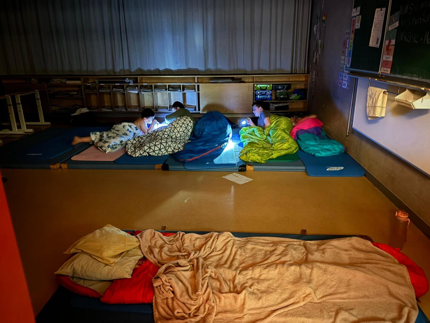 Nach diesem aufregenden Abenteuer stärkten sich alle bei einem gemeinsamen Abendessen. Den gemütlichen Ausklang bildete das Lesen im Schlafsack, bei dem jede:r noch in seine eigene Geschichte eintauchen konnte.