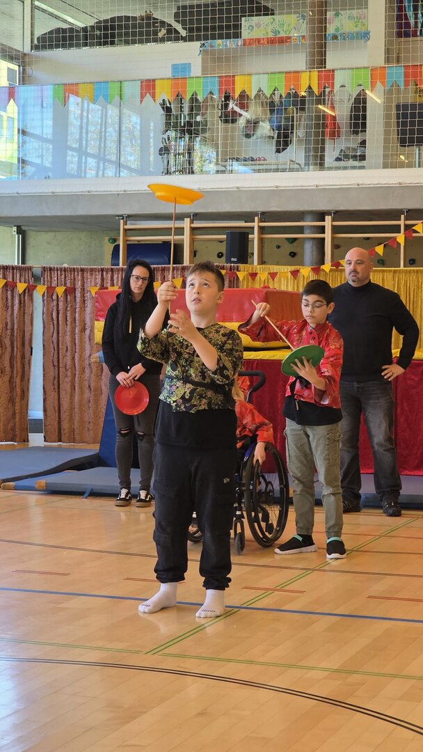 Die Aufregung war bei allen Kindern spürbar – doch mit viel Mut und Unterstützung haben sie ihre Darbietungen großartig gemeistert. Ob Akrobatik, Teller jonglieren oder Kunststücke auf dem Trampolin: Die Vorstellungen waren ein voller Erfolg!